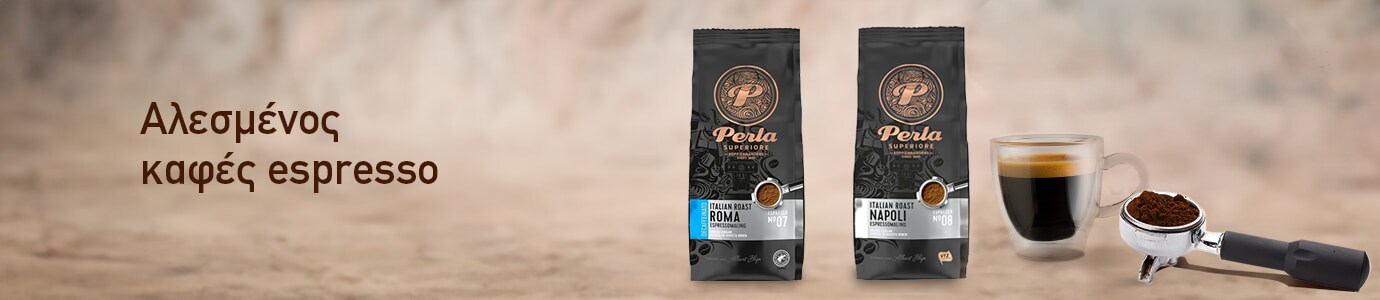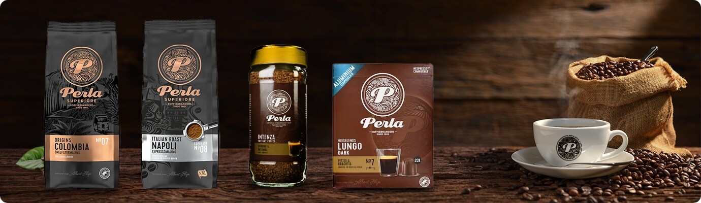 Από το 1895, καβουρδίζονται μόνο οι καλύτεροι κόκκοι στο καφεκοπτείο της Perla. Ανακάλυψε τον καφέ Perla που ταιριάζει στην δική σου στιγμή, μέσα από μια μεγάλη ποικιλία από διαφορετικά χαρμάνια και καβουρδίσματα και για διαφορετικές μεθόδους παρασκευής. Οι κόκκοι καλλιεργούνται, καβουρδίζονται και συσκευάζονται με βιώσιμο τρόπο. Καφές φίλτρου, ελληνικός, στιγμιαίος, espresso αλεσμένος, σε κόκκους αλλά και σε κάψουλες συμβατές με μηχανές Nespresso™ & Dolce Gusto™, για να καλύψουν κάθε σου ανάγκη.