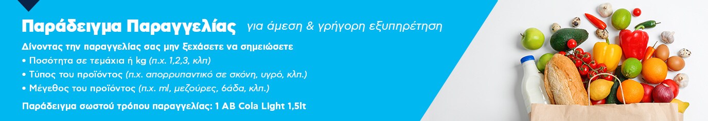 Κάνε εύκολα και γρήγορα τις αγορές μέσω του ΑΒ Eshop. Εμείς θα την παραδώσουμε στον χώρο σου την ημέρα και ώρα που θα επιλέξεις.