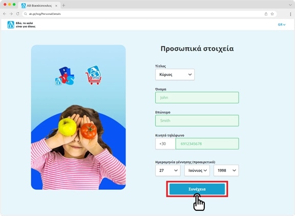 Στην συνέχεια θα πρέπει να συμπληρώσεις τα προσωπικά σου στοιχεία. Μετά πάτησε το κουμπί "Συνέχεια"