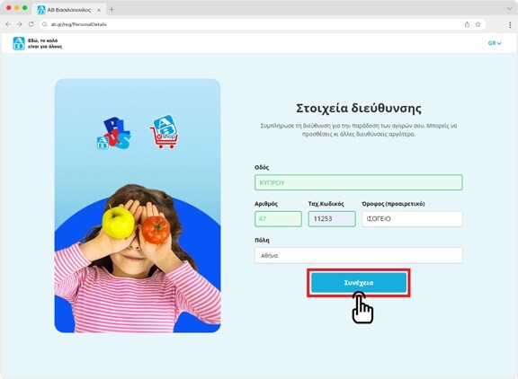 Στην συνέχεια θα πρέπει να συμπληρώσεις τα στοιχεία διεύθυνσης. Μετά πάτησε το κουμπί "Συνέχεια"