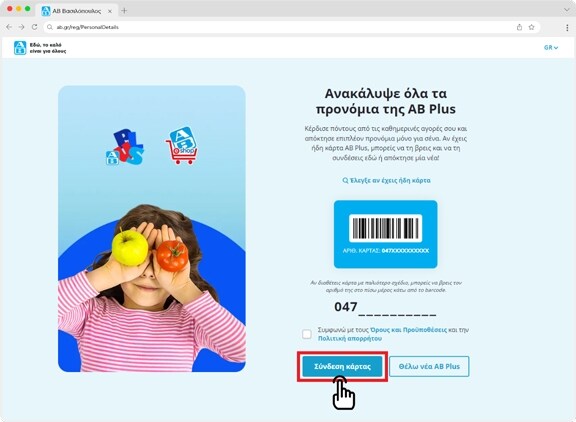 Συμπλήρωσε το νούμερο της κάρτας AB Plus και πάτησε "Σύνδεση κάρτας"