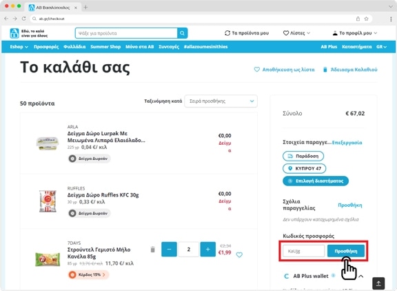 Αν έχεις κάποιον έγκυρο κωδικό προσφοράς, μπορείς να τον βάλεις στο αντίστοιχο πεδίο και να πατήσεις "Προσθήκη"