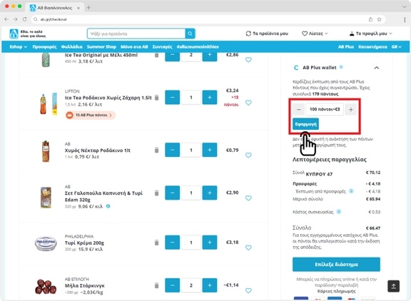 Επίλεξε πόσους πόντους από το AB Plus Wallet σου θέλεις να μετατρέψεις σε έκπτωση