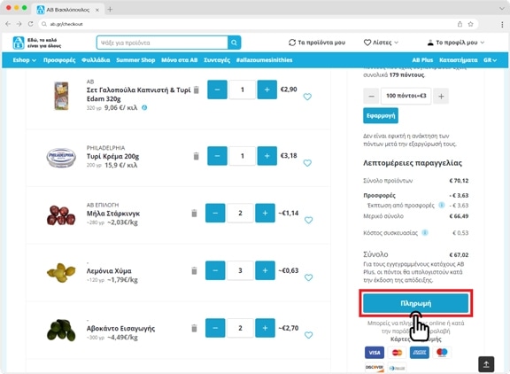 Για να προχωρήσεις στην εξόφλιση της παραγγελίας σου, πατάς "Πληρωμή"