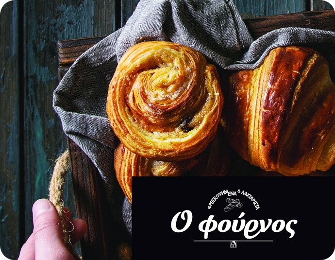O φούρνος μας με ζεστό ψωμί κάθε επιλογής και νόστιμα σνακ για κάθε ώρα της ημέρας. Σφολιάτες και πίτες που θυμίζουν σπιτικές αγαπημένες γεύσεις.