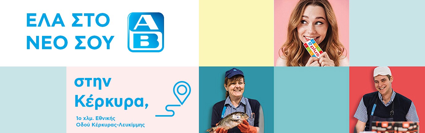 Ήρθε το νέο σου ΑΒ στο 1ο χλμ. Εθνικής Οδού Κέρκυρας -Λευκίμμης για να σου προσφέρει μια ολοκληρωμένη εμπειρία αγορών, ἀνεσης και ασφάλειας.