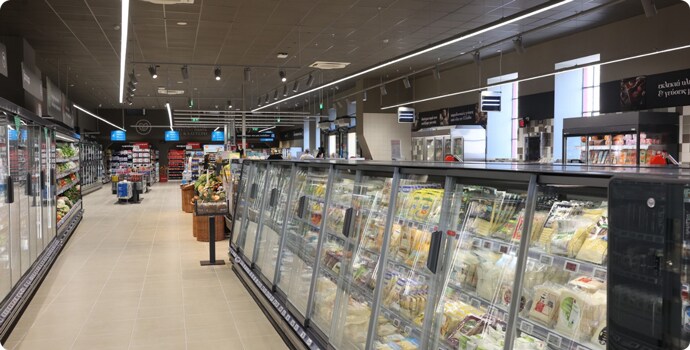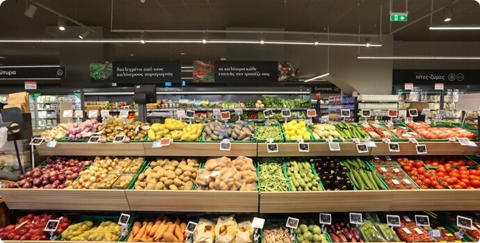 900τμ με 1 επίπεδο | 3 ταμεία | 2 self check out | 30 θέσεις Parking