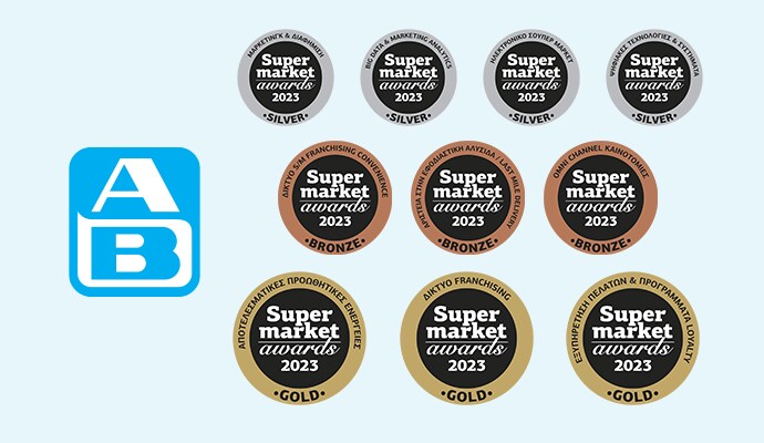 Η ΑΒ Βασιλόπουλος διακρίθηκε για ενέργειές της σε τέσσερις σημαντικούς θεσμούς Diversity & Inclusion Awards, Responsible Business Awards, Supply Chain Awards και Health and Safety Awards, με πολλαπλά βραβεία σε διαφορετικές κατηγορίες. Σε καθημερινή βάση η ΑΒ καινοτομεί και κάνει τη διαφορά, διατηρώντας την υψηλή ποιότητα τόσο στα προϊόντα που παρέχει, όσο και στις δράσεις της προς τους καταναλωτές, τους ανθρώπους της και την κοινωνία ευρύτερα.