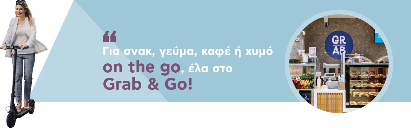 Για σνακ, γεύμα, καφέ ή χυμό on the go, έλα στο Grab & Go!