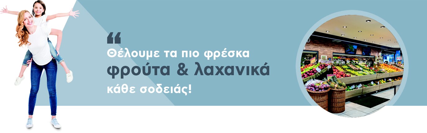 Μια τεράστια ποικιλία από φρούτα και λαχανικά, αλλά και έτοιμες λύσεις, όπως κομμένες και πλυμένες σαλάτες, σε περιμένουν για να τα απολαύσεις. Τα καλύτερα κάθε σοδειάς και κάθε εποχής έρχονται από τα χωράφια ντόπιων παραγωγών, για να σε εμπνεύσουν να φτιάξεις με αυτά τις πιο θρεπτικές σαλάτες, ευφάνταστα smoothies και πεντανόστιμα πιάτα.
