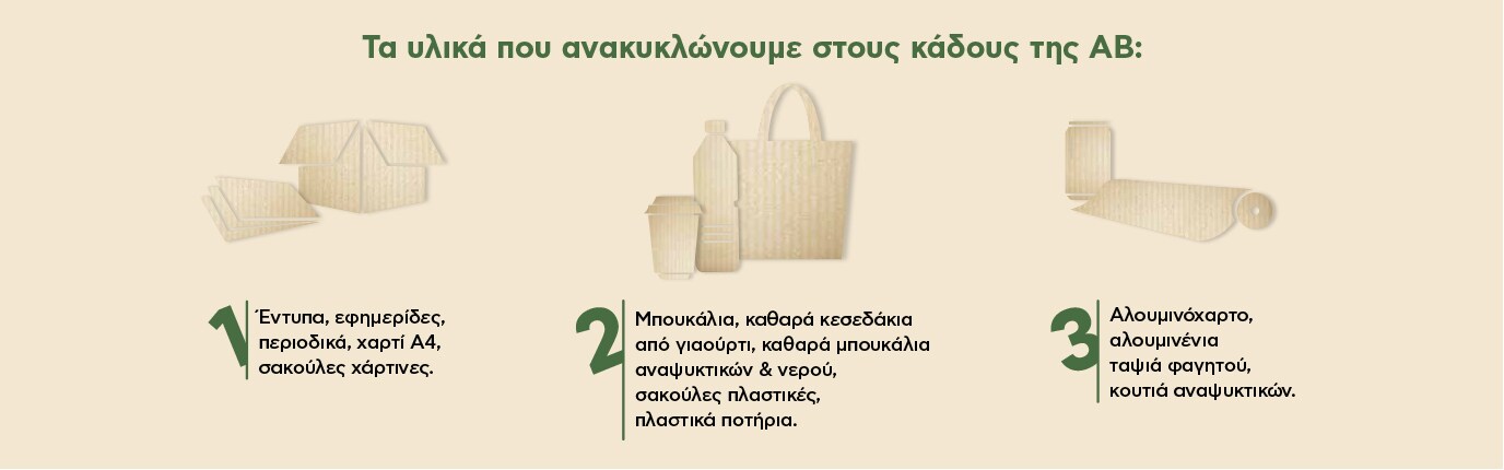 Στο πλαίσιο λειτουργίας του Ατομικού Συστήματος Ανακύκλωσης, η ΑΒ έχει δημιουργήσει “ειδικό σήμα ανακύκλωσης” για όλα τα προϊόντα ιδιωτικής ετικέτας και βέβαια τα κέντρα ανακύκλωσης.